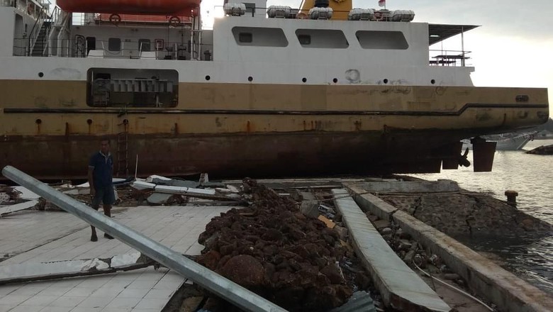 Kerusakan pun nampak terjadi di salah satu pelabuhan, yaitu Pelabuhan Pantoloan.